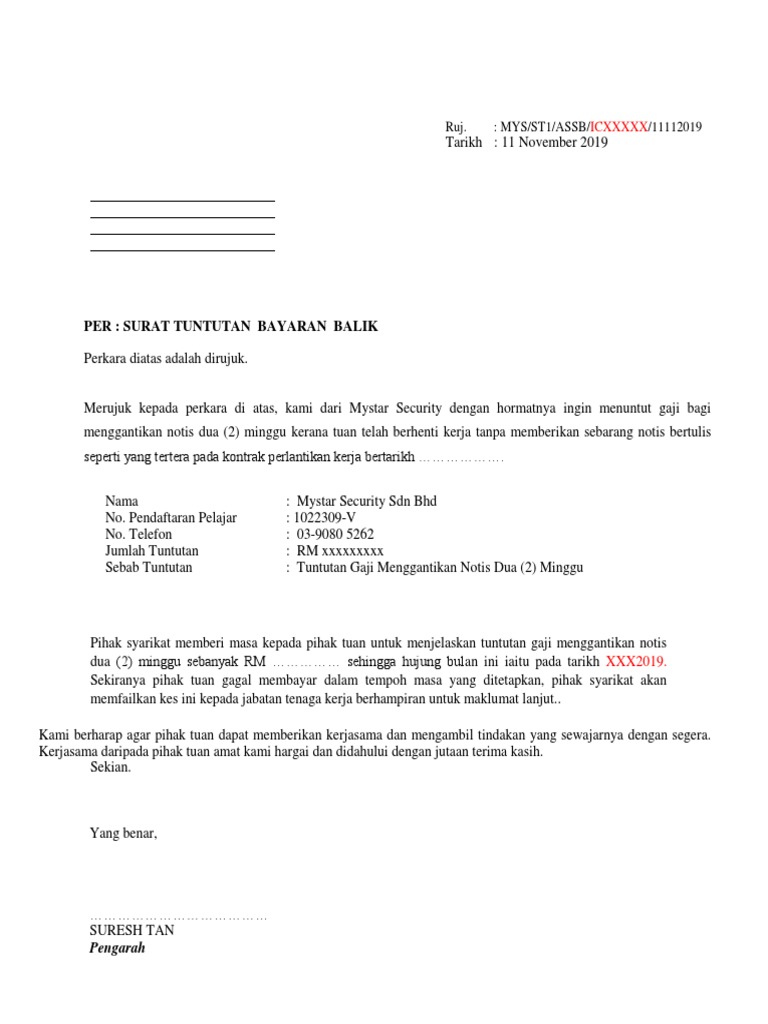 Surat Tuntutan Bayaran Balik Latest Letter Website